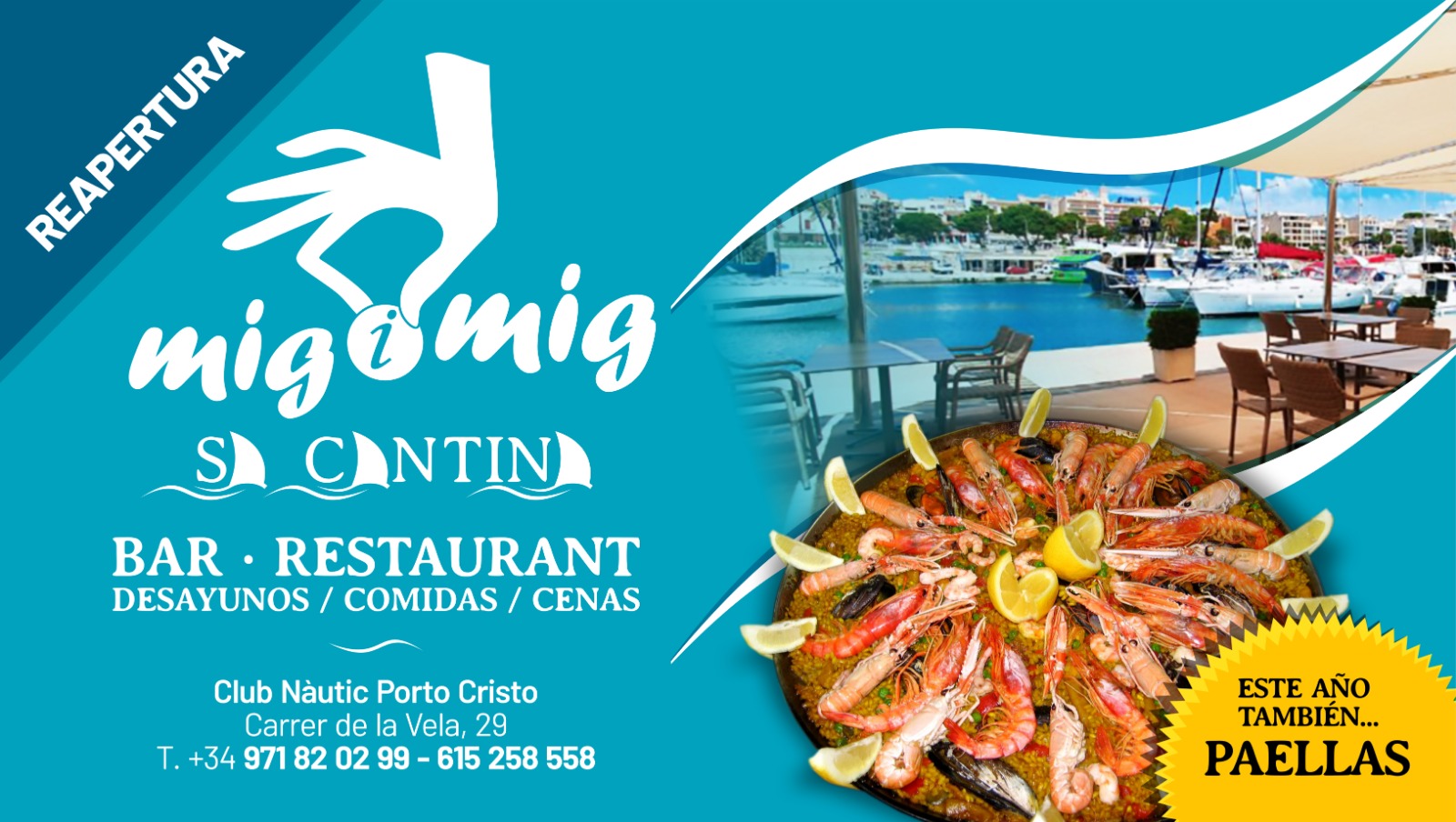 Sa Cantina En el muelle del Club Náutico Porto CristoGestión: David SerraHORARIO DE APERTURADesde el 1 de abril 2026De martes a domingo 9:30 a 17:00 h.Lunes cerrado.Información y reservas: +34 971820299 – T. 615 258 558 GRUPOS – COMIDAS Y CENAS DE EMPRESAEnviar email a: mi************@*****il.com CARTAS Carta Mañana / Mediodía Carta Mediodía / Noches Buzón de sugerencias Sugerencias SA CANTINA Nombre o en blanco para sugerencia anónima Email (opcional) Sugerencia para SA CANTINA Bistró (CN Porto Cristo) * De acuerdo con lo establecido a la Ley de Protección de Datos de Carácter Personal 15/99, de 13 de diciembre, se informa que los datos registrados en este formulario sirven exclusivamente a la finalidad de conocer las opiniones de los usuarios de Sa Cantina del Club Náutico Porto Cristo. Estos serán conservados en un fichero el responsable del cual es el Club Náutico Porto Cristo. Los titulares de los datos pueden ejercer su derecho de acceso, rectificación, oposición y cancelación, dirigiendo su solicitud a las oficinas del Club Náutico Porto Cristo. * He leído y acepto las condiciones legales (*) ENVIAR Si eres humano, deja este campo en blanco. Δ